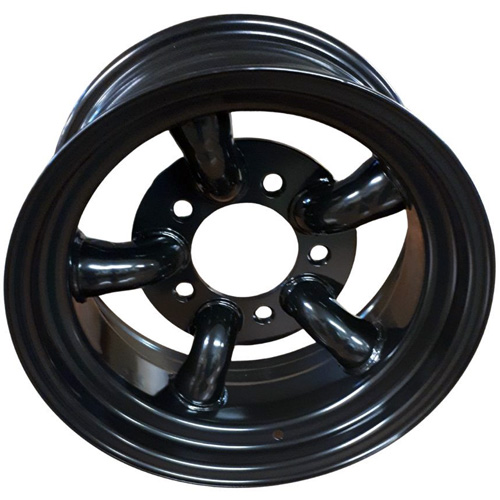 Stalen 5 spaaks velg, afgewerkt met een zwarte poedercoating!